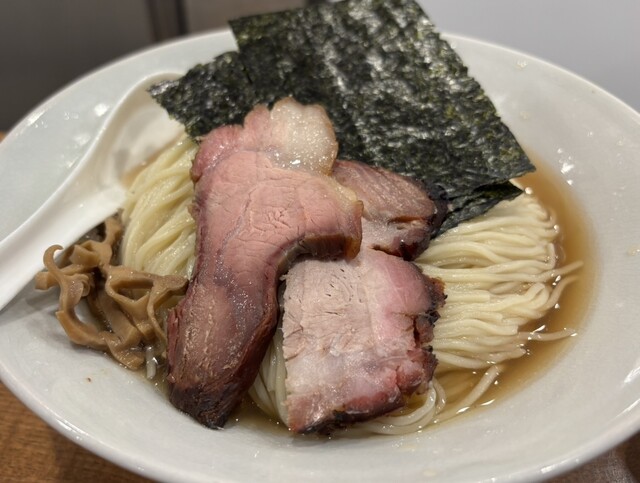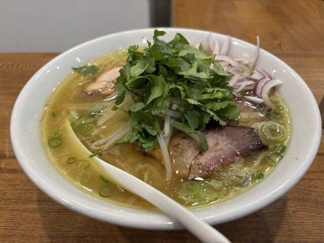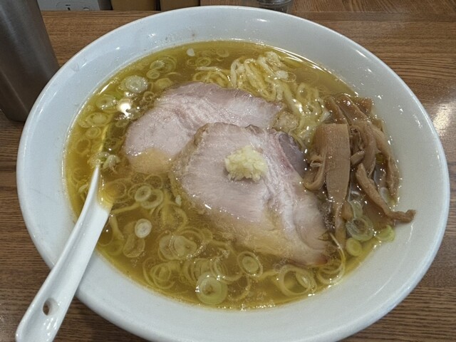 ラーメンは塩ベースで豚と鶏のあぶりチャーシューがのっててうまい。