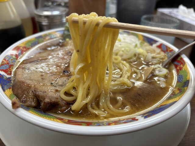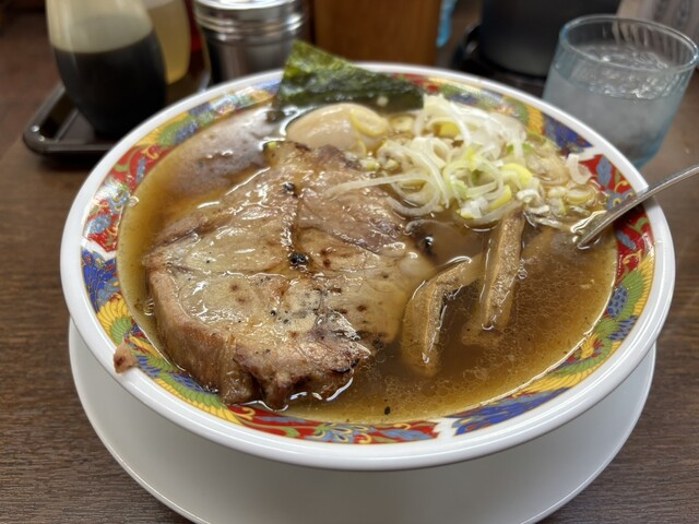 まぐろ出汁とデカめのあぶりチャーシュー、黄色い麺。