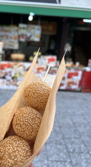 南京町を歩いていると、ごま団子をたくさん見かけます!だいたいどこも1個100円で売られていることが多い中、こちらでは3個で200円で売られていました!!