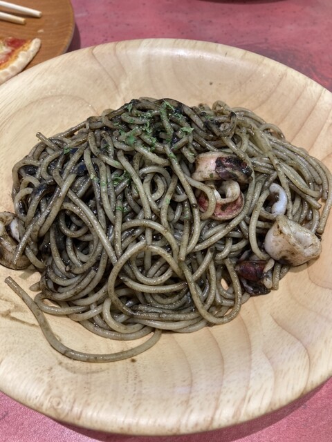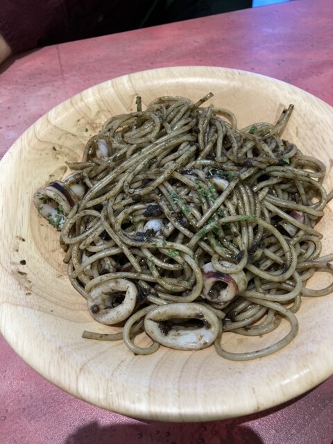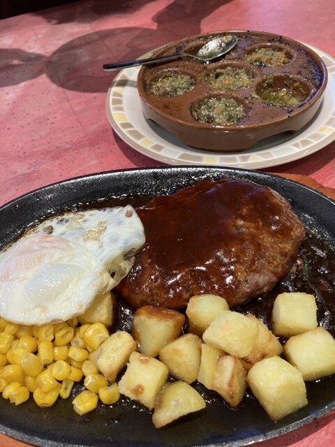 エスカルゴ、イカ墨のパスタ、ドリア、鶏肉のグリルステーキ、締めにティラミスとプリンのスイーツでした