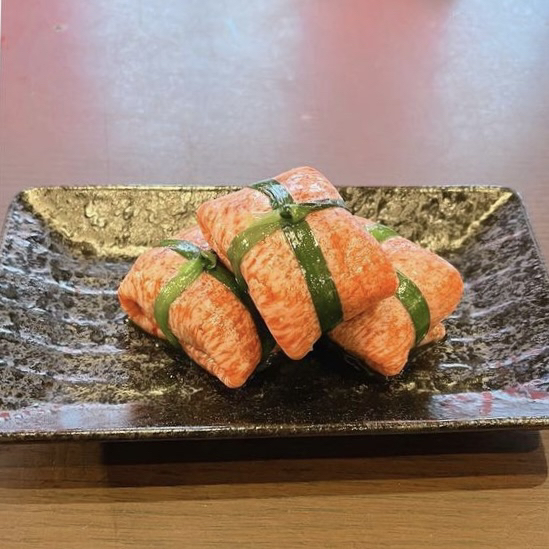 タンのミンチと葱を、タンで包んであってじっくり焼いて食べます。