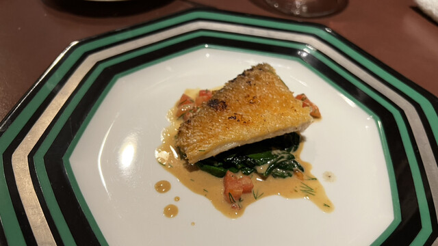 特に印象に残ったのは仔羊のロースト。絶妙な火入れで、外は香ばしく中はしっとりジューシー。付け合わせの玉ねぎや粒マスタードが、ソースと絡んでお肉の旨みを引き立てていました。