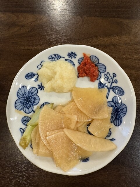 大根の醤油漬けもサービスで置いてあった。口の中がさっぱりする。