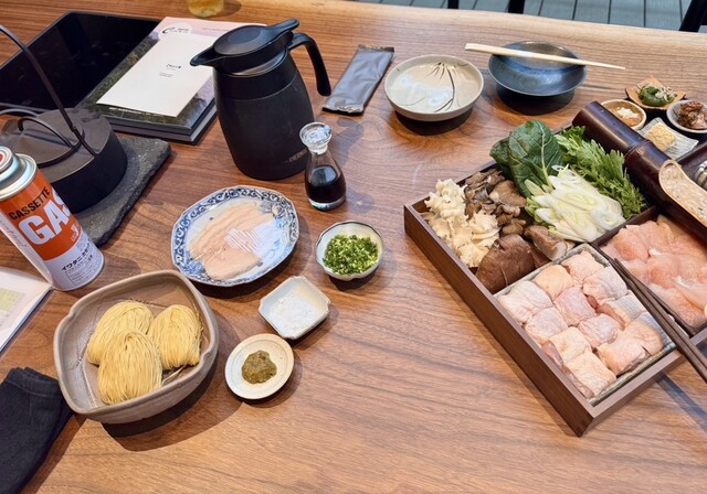 濃厚な鶏出汁にたっぷりの野菜、大ぶりの鶏肉やつくね、薬味も豊富で一通り鍋を楽しみ〆の極細麺のラーメンには鶏チャーシュー、たっぷりの葱など薬味もしっかり入れて〆まで美味しく頂きました。