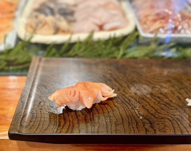 この真ごちが実に素晴らしく、平目同様に塩でオーダーし、淡白ながらも咀嚼するたびに食感、旨味が際立ちます。真ごちならではの弾力ある食感がとても好きな一貫でした。