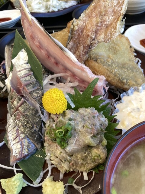 ふっくら鯵フライ、さんが焼き、鯵のお刺身(このゴマだれが美味しい!)、なめろう、鯵の骨唐揚げ、どれも美味しかったです。
