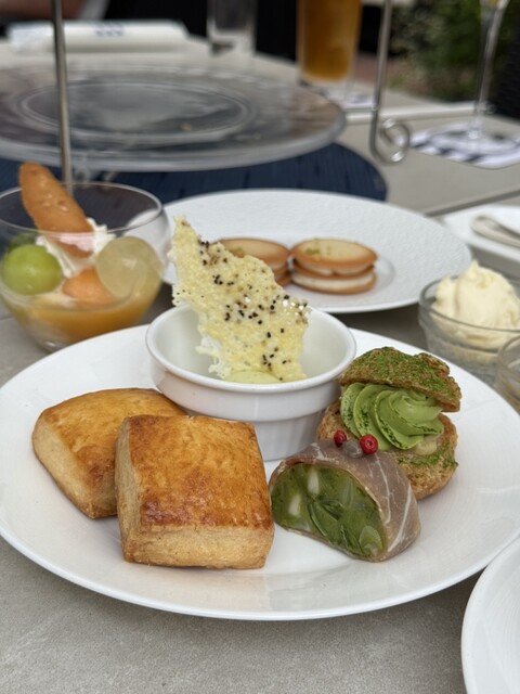 ヨックモック青山本店のアフタヌーンティー。初夏のテラス席は風が心地良くて最高でした!