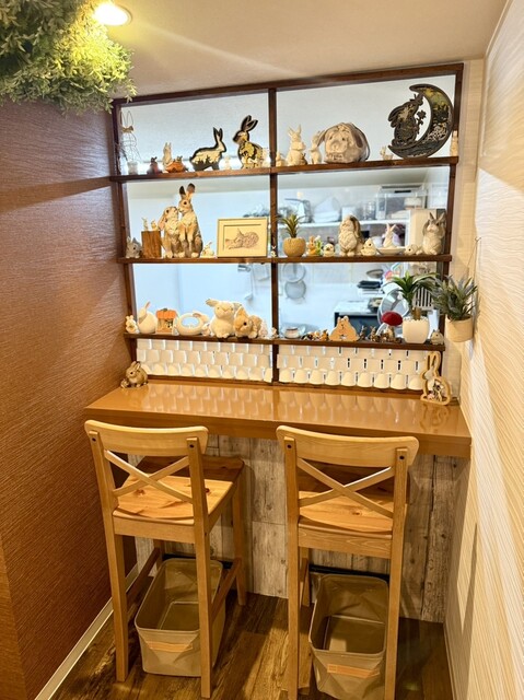 うさぎの置物や時計、ぬいぐるみなどうさぎだらけの店内にテンションあがっていると、「他にお客さんが来る前に写真撮ったらええですよー(^ ^)」と店主さんからありがたいお言葉が。神様か!と思いました♡
