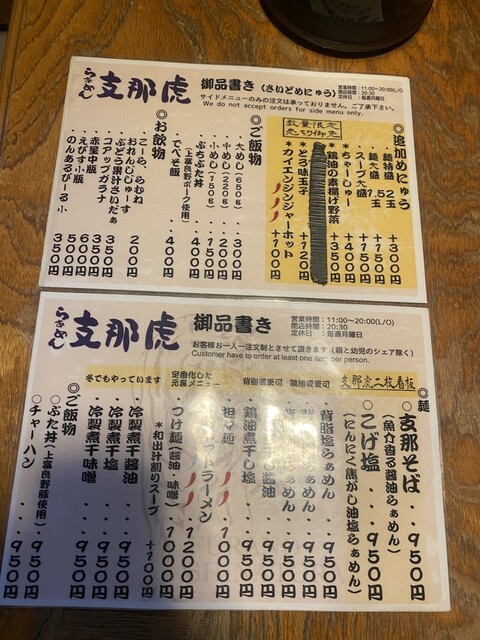 醤油ラーメン(太麺)の濃いめ、多めと豚丼を注文しました。