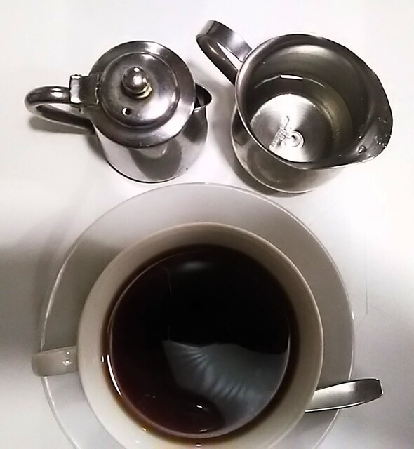 特にミルクかレモンが聞かれなかったのでそのままにしていたら、ミルクの金属の入れ物で出てきました コーヒーフレッシュじゃないのが昔ながらの喫茶店の感じでいいです