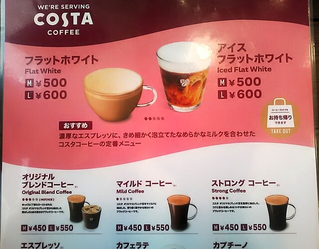 通常ではコスタコーヒーのまん丸の広い口のカップに入ってきます