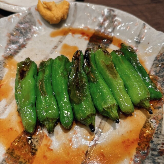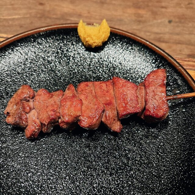 最初はレバーから。此処のは火入れが僅かで炙った程度か、とても柔らかいので、最初これがレバーかと思うほど。掴みはOK。そして、上シロ。これも柔らかくて蕩ける食感。コメカミに続いて、此処が発祥というピーマンの肉詰め。いろいろな種類の肉を使っているらしいが、バランスがいい味。これの具のようなつくね。次は黒豚のすき焼き。豚の脂も美味しく頂ける。軟骨はコリコリがいい感じ。シロ焼きは皮かと思うほどで、これも食感が柔らかくてたまらない。