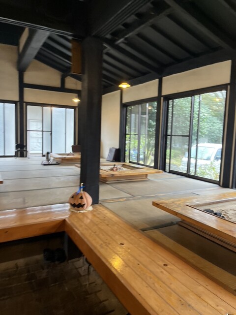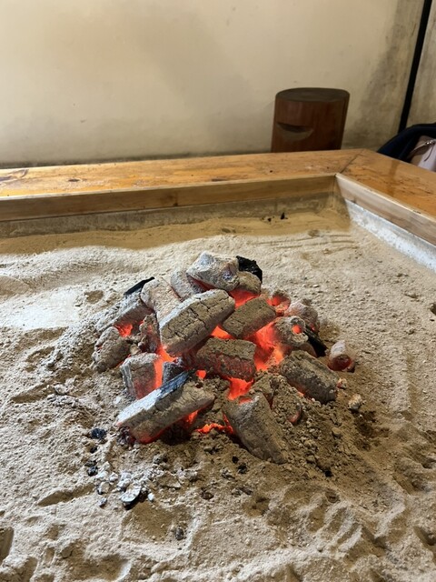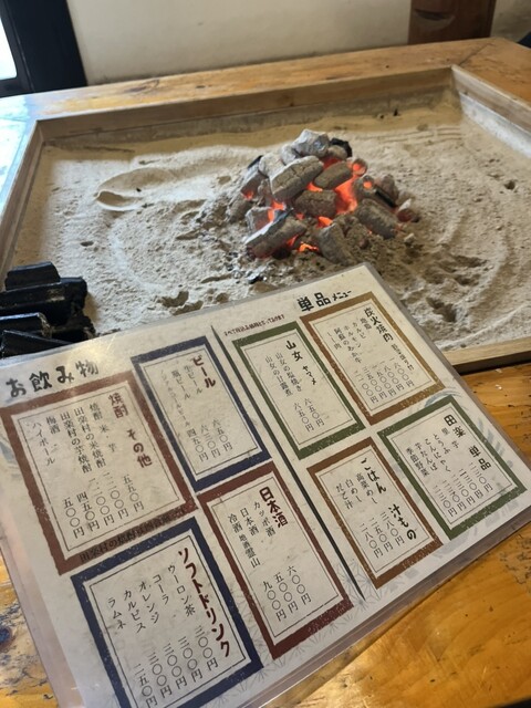 入ってまず目を引いたのは、囲炉裏。ぱちぱちと薪がはぜる音が心地よく、どこか懐かしい雰囲気が漂っており、旅の途中とは思えないほどリラックスできる空間でした。店員さんの優しい対応も印象的で、地元の温かさを感じられます。