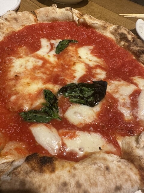 ①ガエターノ(白系、ピスタチオクリーム)、②ベーコン(マルゲリータ)を注文。