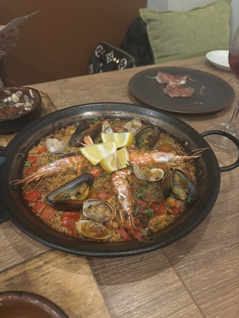 サラダや生ハム、パエリアやアヒージョを注文。どれも値段相応にとても美味しかったです。