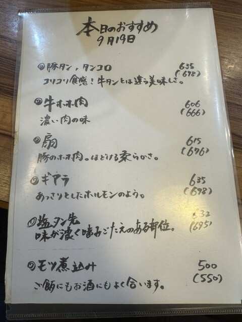 いつも通り、本日のおすすめを全部注文し後は好きな部位を注文しました。