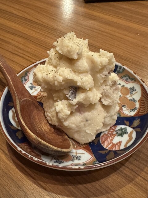 いぶりがっこのスモーキーさにたくあんのパリパリがしっかりあってその味を潰さないちょうどいいポテサラの味で美味しくて2個頼んでしまいました。