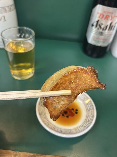 老舗の風格満載の店内はGreen Colorのカウンターで夫婦水入らず先ずはBeerで乾杯してピータンを、おつまみに待ってました〜肉汁たっぷり薄皮餃子それぞれ一人前を酢醤油➕ラ-油で頂き休日の昼飲みバレンタインday美味しく夫婦の会話も弾み次回は Familyで Enjoyしたいおけ以ご馳走様でデス(o^^o)