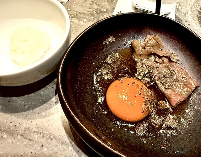 季節の匠コース 冬 ❻ザブトンのすき焼き(で使用した卵とトリュフで卵かけご飯)