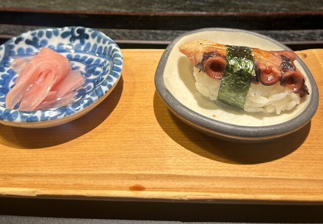 コース序盤に出てくる煮タコ握りの味がコース終わりまで残っています。注文の際にコースから外してもらう選択肢もアリなのではないかと思いました。