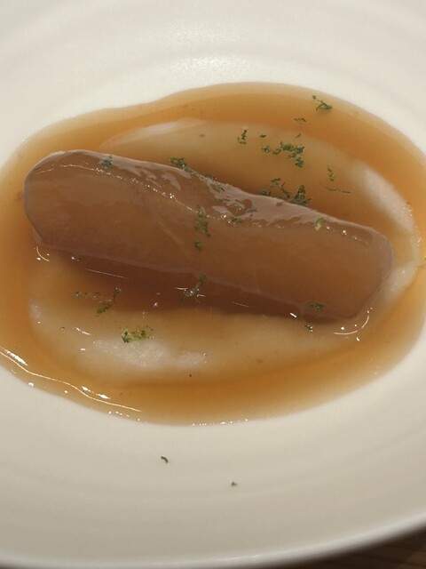 今回は秋の料理ということで、優しい甘味や柔らかな塩味を取り入れられ、果実系の酸味を感じるお皿が多めで、全体的に素材重視の優しい味付けのコース。