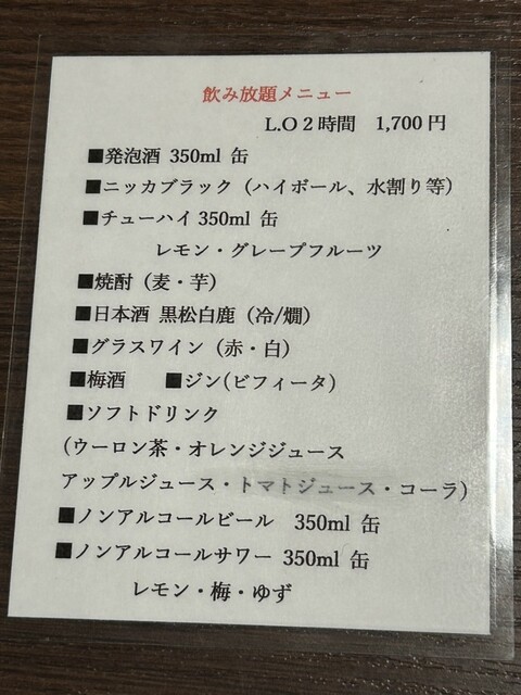 ジビエのコースは飲み放題をつけても7000円とコスパ抜群、さらに飲み放題をつけるとお酒の持ち込みが自由という太っ腹なお店
