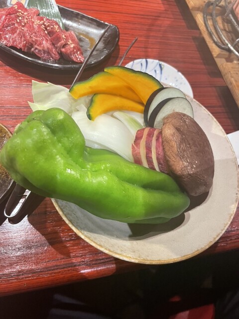 焼き野菜盛りは結構ボリュームがあり、デカい椎茸やピーマンがそそります。