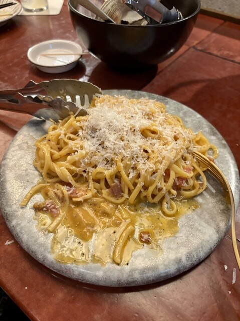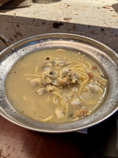 たくさんの貝が名前の通り風呂に浸かっているかのようにたっぷり入った1品。たくさんの貝が食べられるだけでなく出汁も絶品。〆パスタではたくさんの貝のうまみが染み出たボンゴレを堪能。最後の一滴まで貝を楽しめます。