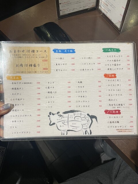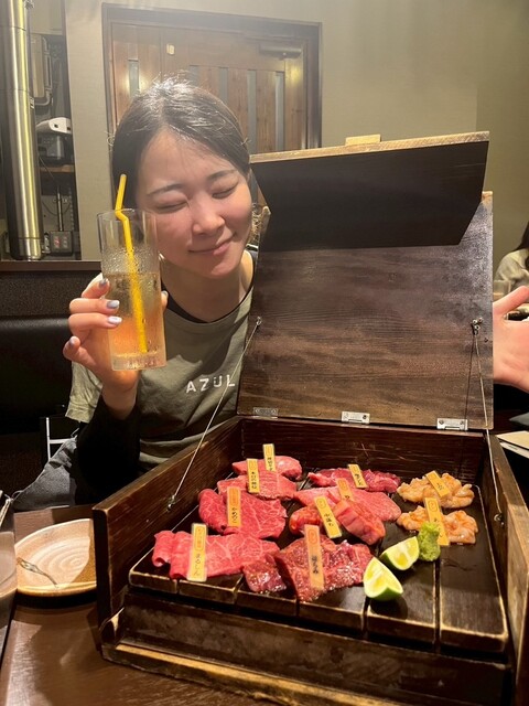 コース料理はその日のおすすめお肉や、赤身、タンなどが入っており、お肉を持ってきてくれる瞬間はパフォーマンスですごすぎた。