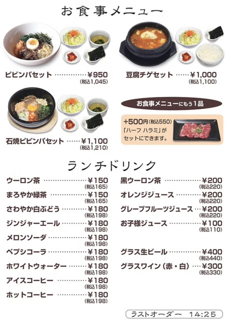 ご飯は大盛無料、ソフトドリンクは1杯200円前後と良心的。