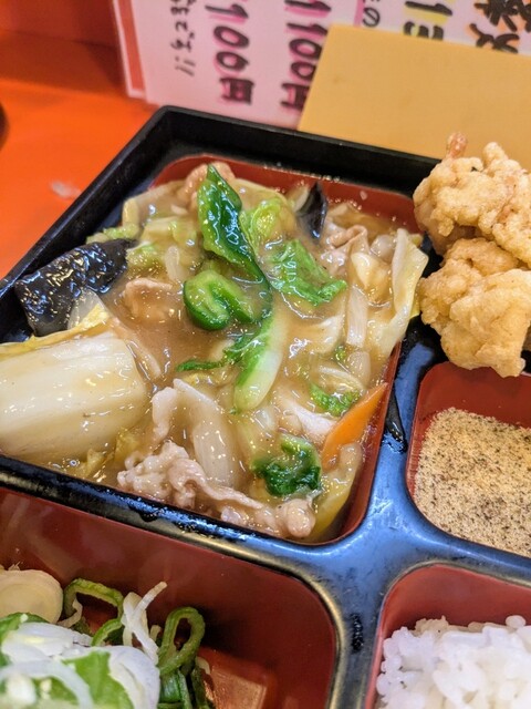 「東菜館純ちゃん」で、巨大な唐揚げと五目うま煮の"日替わりランチ"