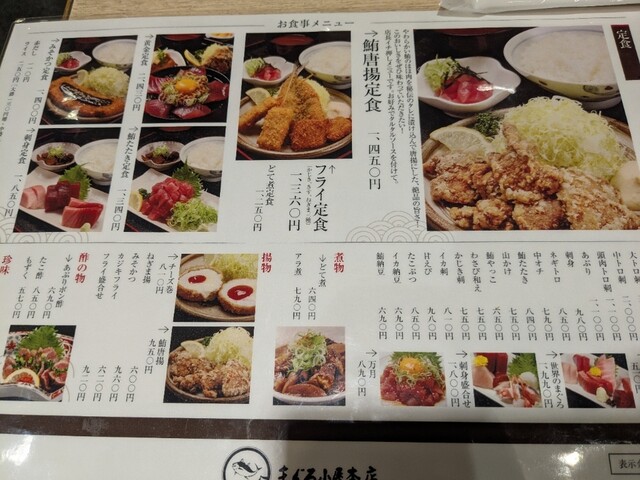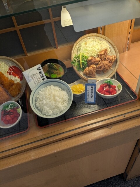 鮪の唐揚げと、赤身がのった贅沢な定食。