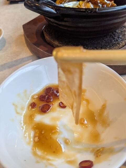熱々の鉄鍋からなんとも言えない照り輝き。