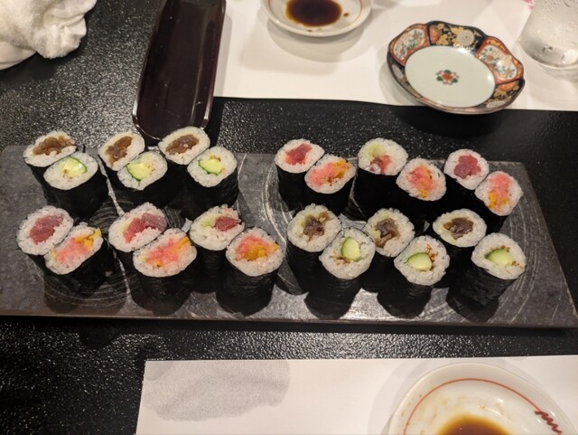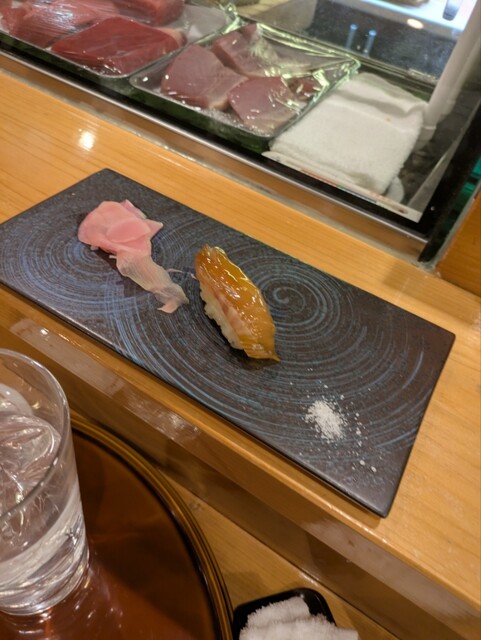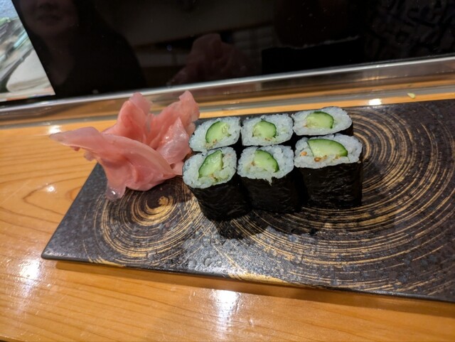 鮪は、旨いの当たり前だけど、歯が要らないほど柔い穴子や厚焼き玉子は、鮨名店では驚かないかもしれませんが、絶対に試して欲しいのは、カッパ巻とべっこう漬かな?