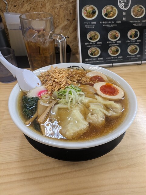 ラーメンは、もちろんトッピングの肉ワンタン、焦がしネギのコンビネーショングッドでした。