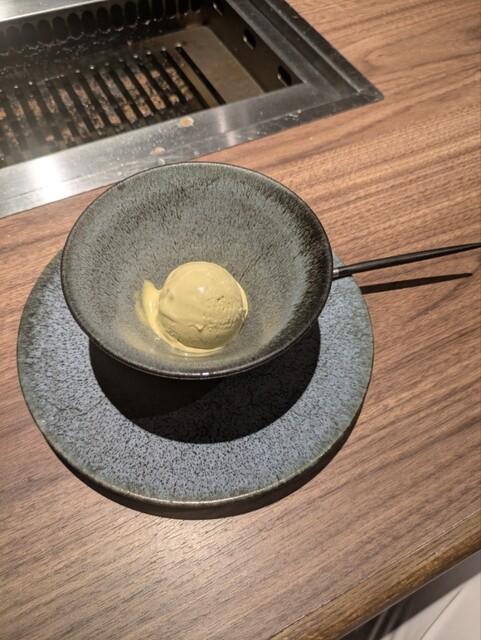 デザートの懐かしい硬めのプリンとメッチャ濃いピスタチオアイスは、これだけで、デザートのお店成り立ちます。