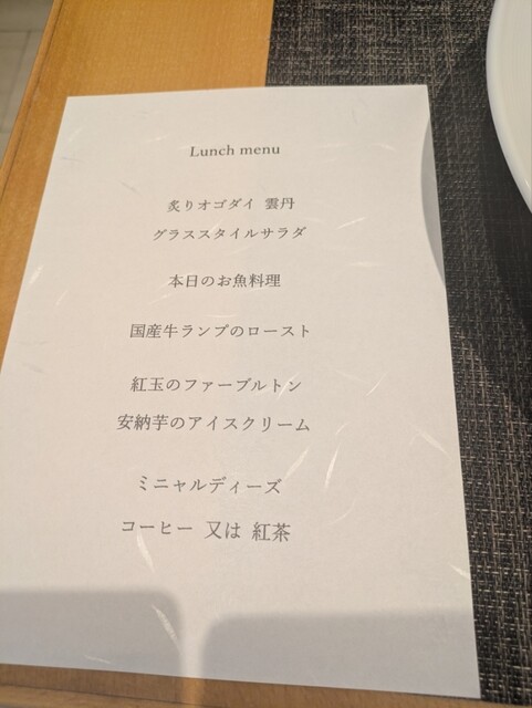 シェフが、サラダや前菜も含めて、使用食材と調理工程など、全ての説明をテーブルに来て伝えて頂けました。非常にマナーもしっかりしたお店ですので、接待にもよろしいかと思います。