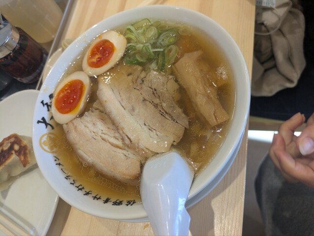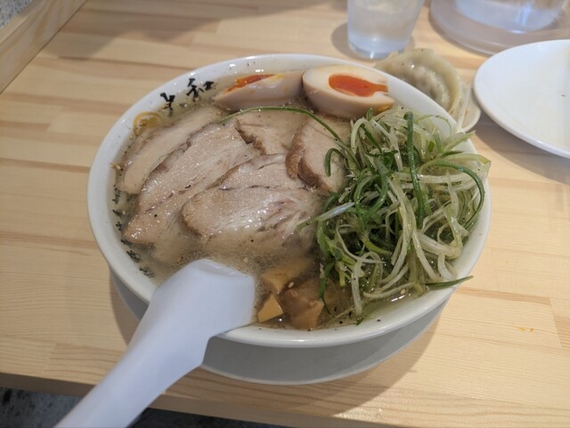 自分は、ネギ塩チャーシュー麺、連れは、ラーメン、餃子3個を頼みを注文。