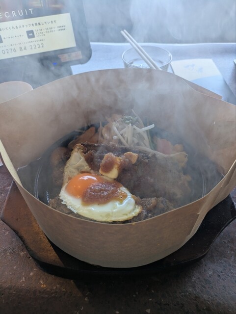 ライスは、もちろん大盛りだったので、トッピングの目玉焼きは、ご飯の上に移動です!