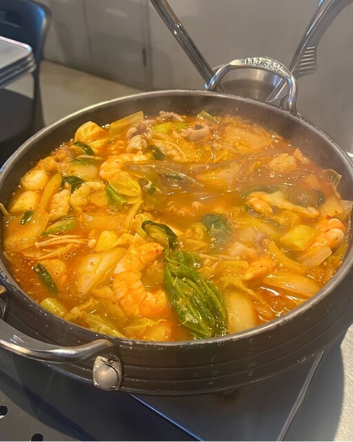 ぐつぐつ煮える鍋を囲む時間って、やっぱりいい。 CHAEEUN名物のナッコプセは、海鮮の旨みとコクのある辛さがじわじわ広がって、お酒が止まらないやつ。 〆の乾麺までしっかり美味しくて、最後の一滴まで満足感あり。