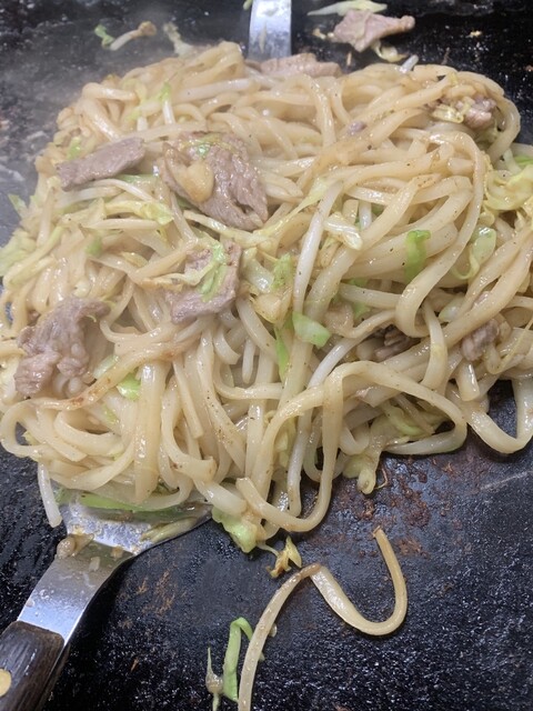 しむけんもんじゃ・三久天スペシャルのお好み焼焼き・焼きうどん(醤油味)・角煮・もつ煮込みを注文。
