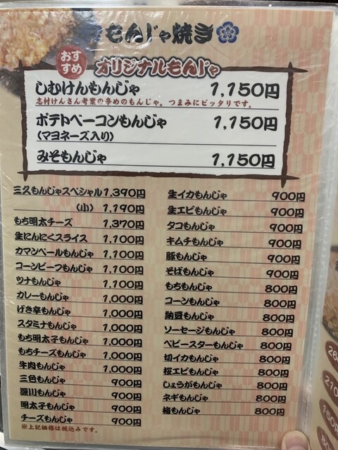 志村けんが考案したというしむけんもんじゃは少しピリ辛でお豆腐も入っていてお酒が進む進む!