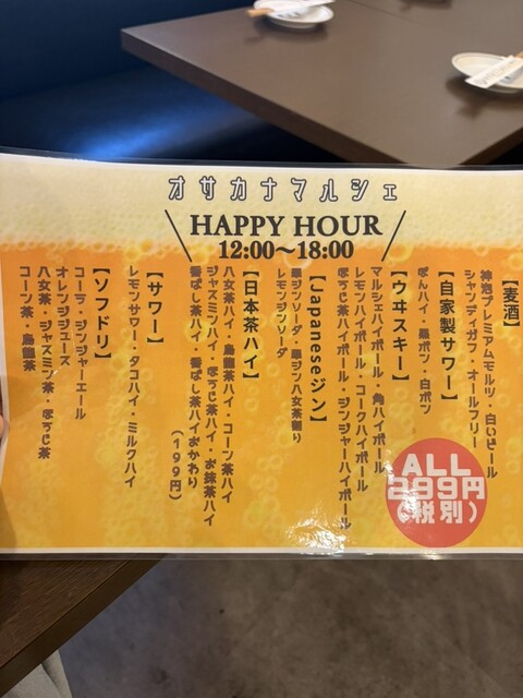 16時から18時までのハッピーアワーは様々なドリンクが299円!