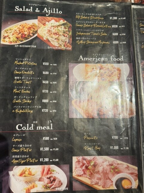 まず驚いたのが、選べるお肉の種類が非常に豊富なことです。この手の本格的なステーキハウスは敷居が高く、お値段も張るイメージがありましたが、こちらは非常にコストパフォーマンスが優秀です。質の高いお肉を、納得感のある価格でガッツリ楽しめるのが嬉しいポイントです。