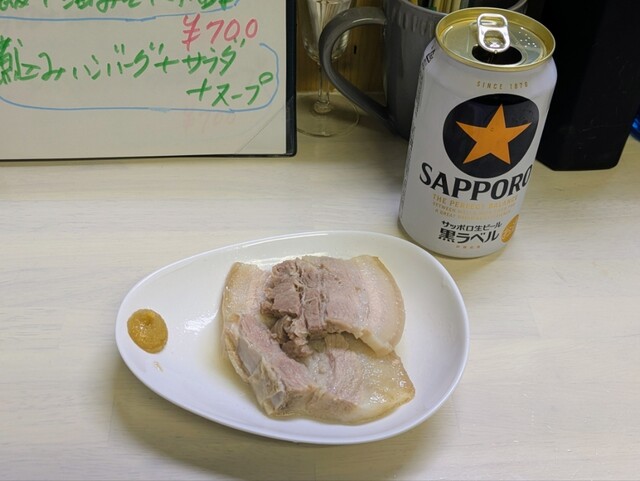 ラフテー(豚バラ肉)と缶ビール