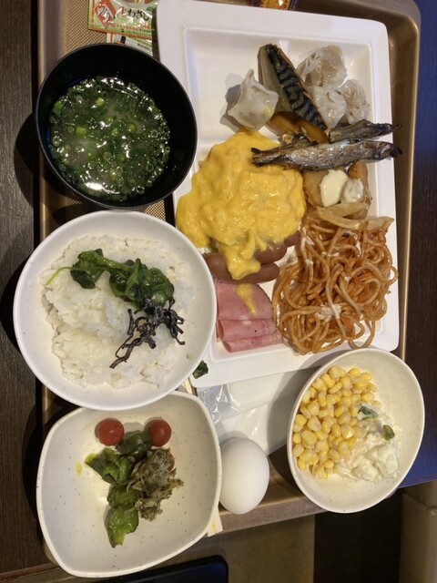 サラリーマンの私にとって、出張先の朝食は一日のコンディションを左右する重要な時間。その土地らしさが感じられるかどうかも大きなポイントだが、ここはその期待をしっかり満たしてくれる。ビュッフェ台には、めった汁、金沢おでん、能登鶏たまごのゆでたまご、能登いしる焼きなど、石川・金沢の名物がずらり。観光客向けの“それっぽい”並びではなく、地のものをきちんと出そうという姿勢が伝わってくる。