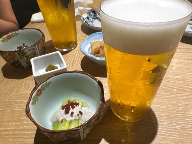 お通しが選べるのがすごく良かったです。アスパラトリュフマヨを選びましたが美味しかったです。