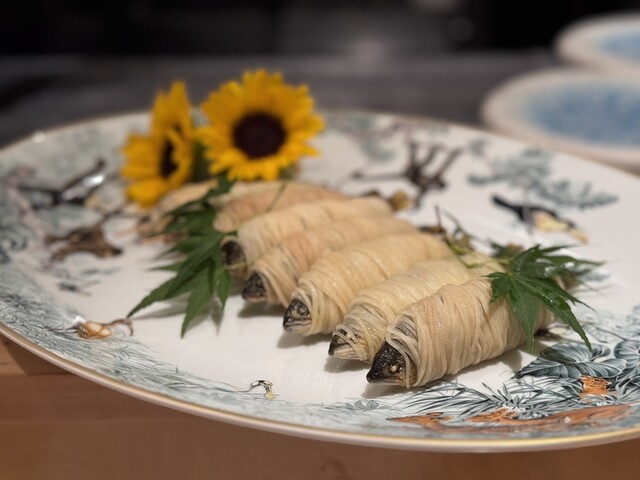 料理は全部で13品で、おなかの具合に合わせて量は調節してくれる。一品ごとに大将が料理の説明をしてくれるうえ、おひとりさまの客には積極的に話を振るなどして、非常に楽しく食事を楽しむことができる。