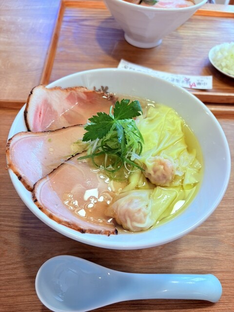2枚目:中華そば(塩)+鶏ももチャーシュー+えびワンタン