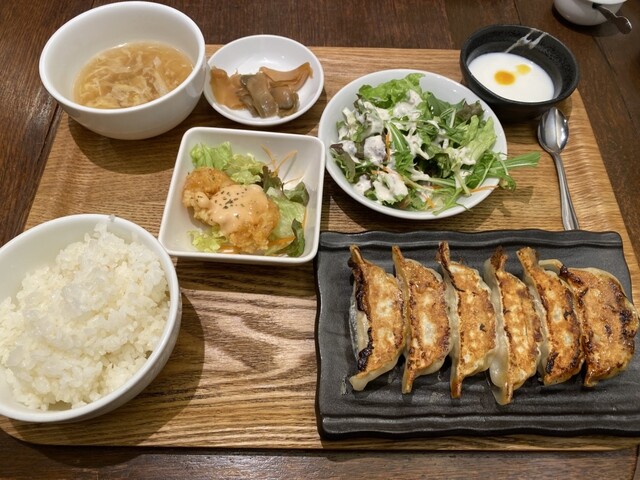 どちらもおかずからご飯、デザートまで味も量も最高でした。餃子は看板商品らしくタネがぎっしり、皮はパリっと焼かれておりハイボールが進む進む。